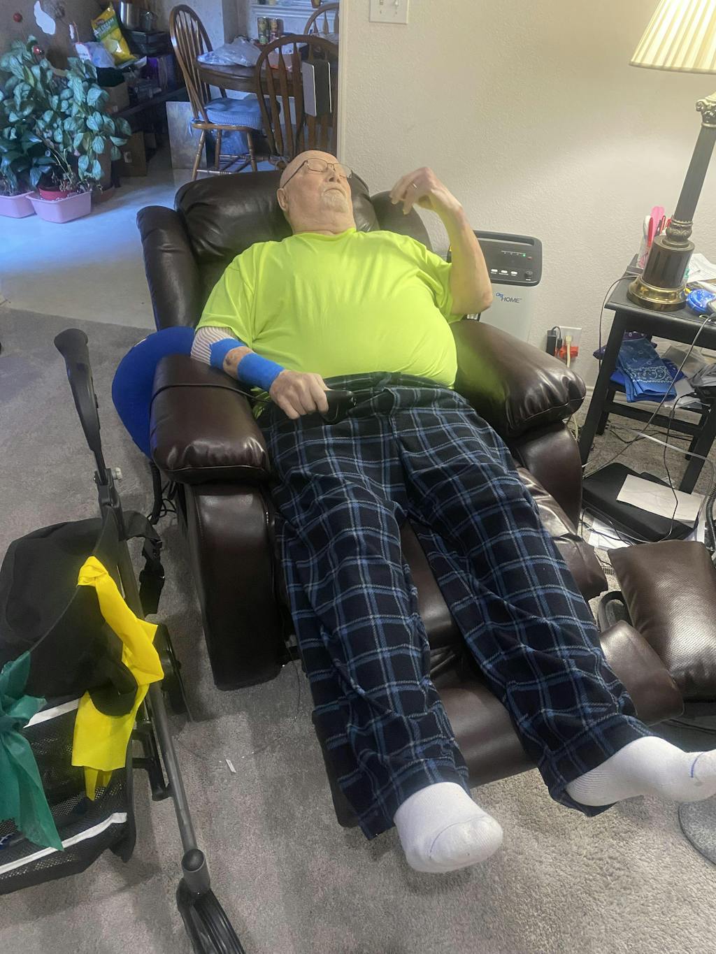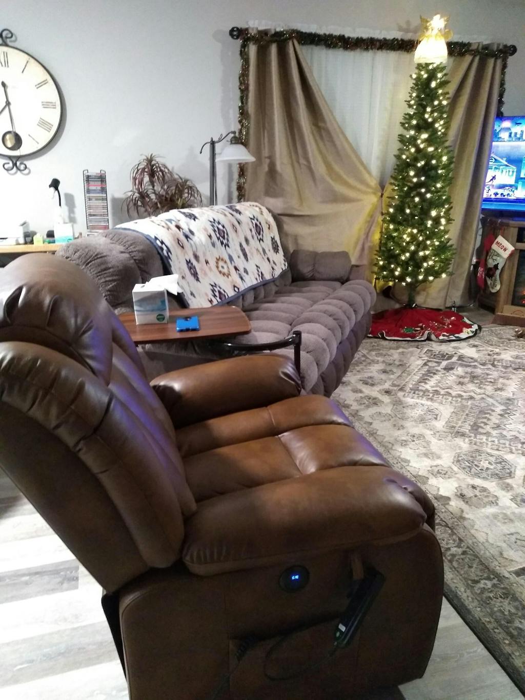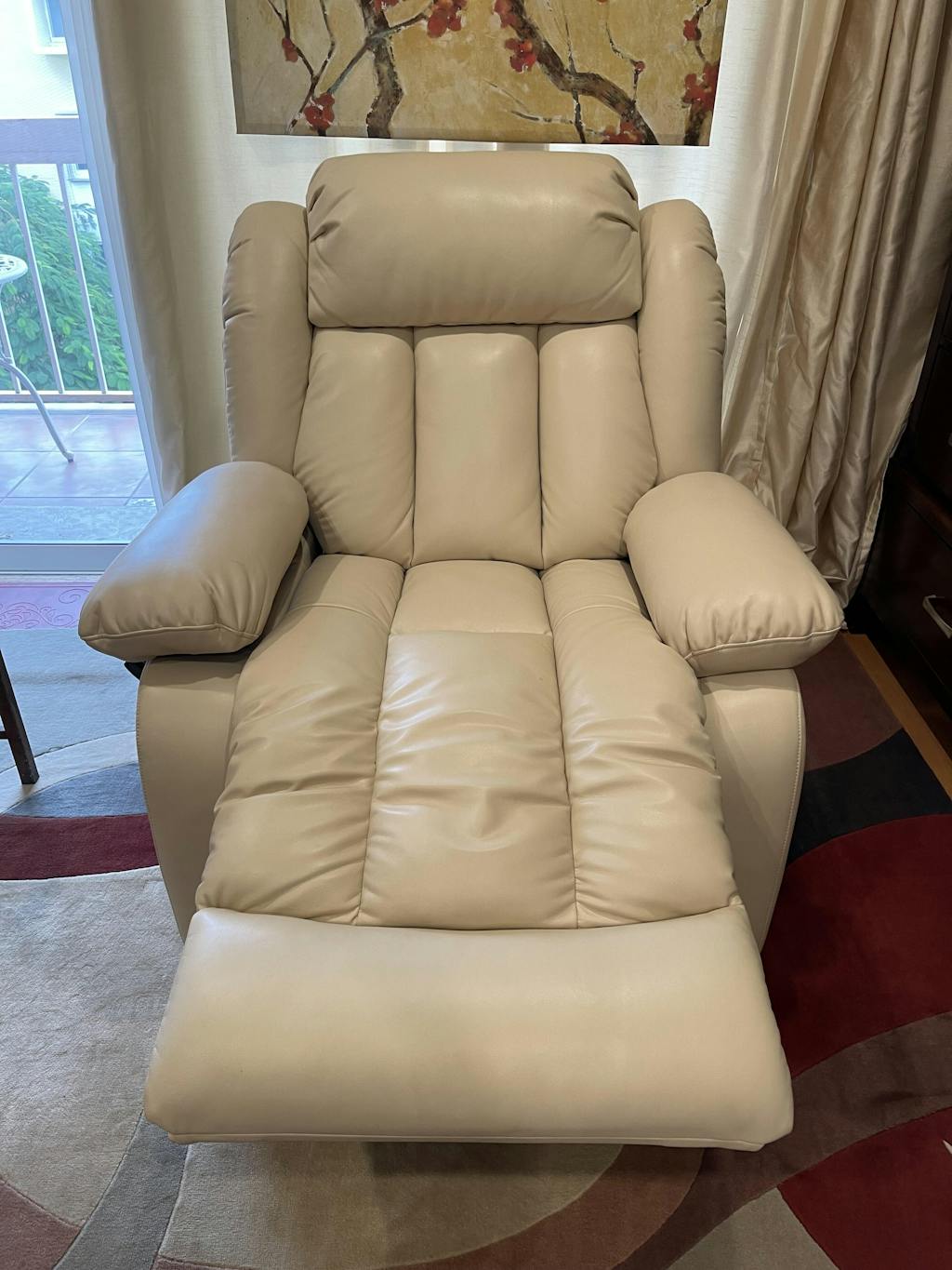 A_brown_leather_recliner_lying_flat_in_the_living_room
