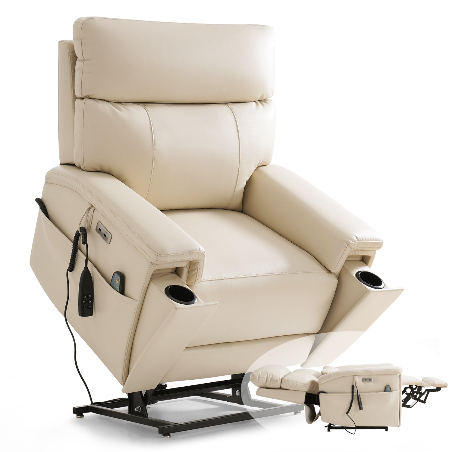 Infinite Position Power Lift Recliner Chair W/ Wireless Charger & Cup Holder, Vibration Massage & Heating, Genuine Leather