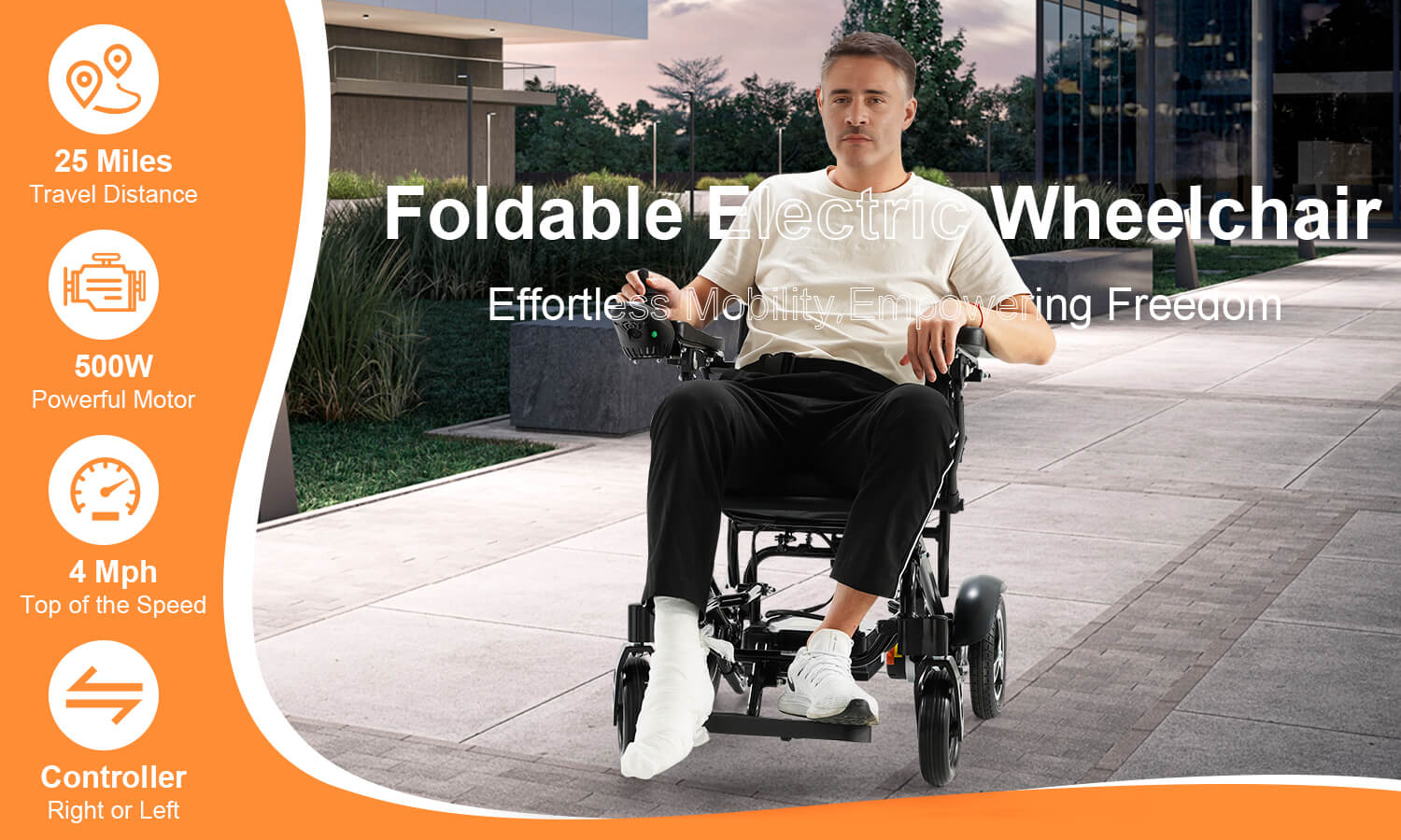 Electric Wheelchair for Adults and Disabled, 25 Miles Range, Ultralight 44LBS, Foldable for Travel, All Terrain.
