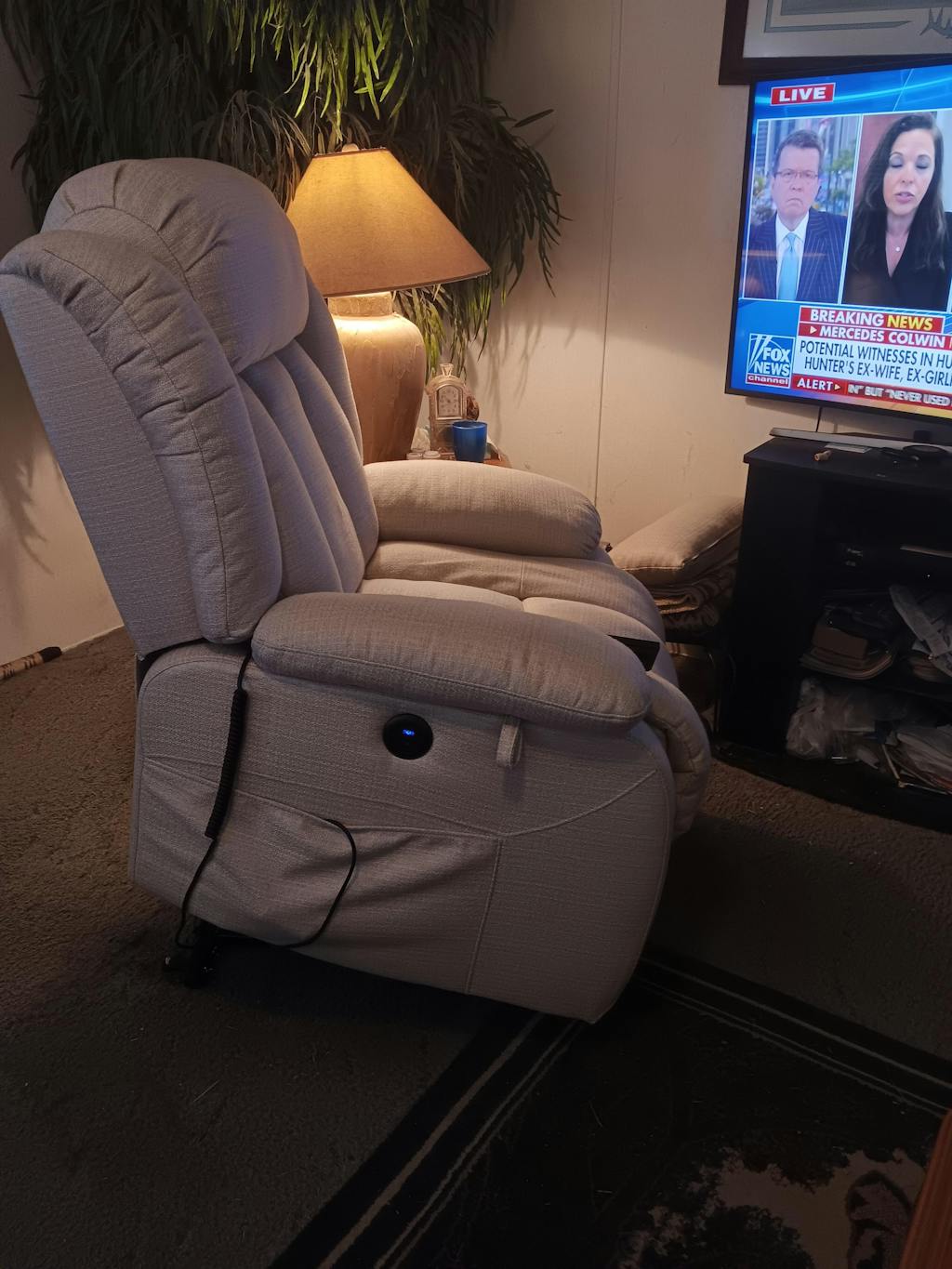 • [USB Port & Pockets] Our electric lift chair is thoughtfully equipped with USB and Type-C port on the top of the remote, allowing you to conveniently charge your low-power devices like phones or pads. Additionally, the two side pockets offer ample space to store books, TV remotes, and other essentials, making it perfect for all your leisure needs.