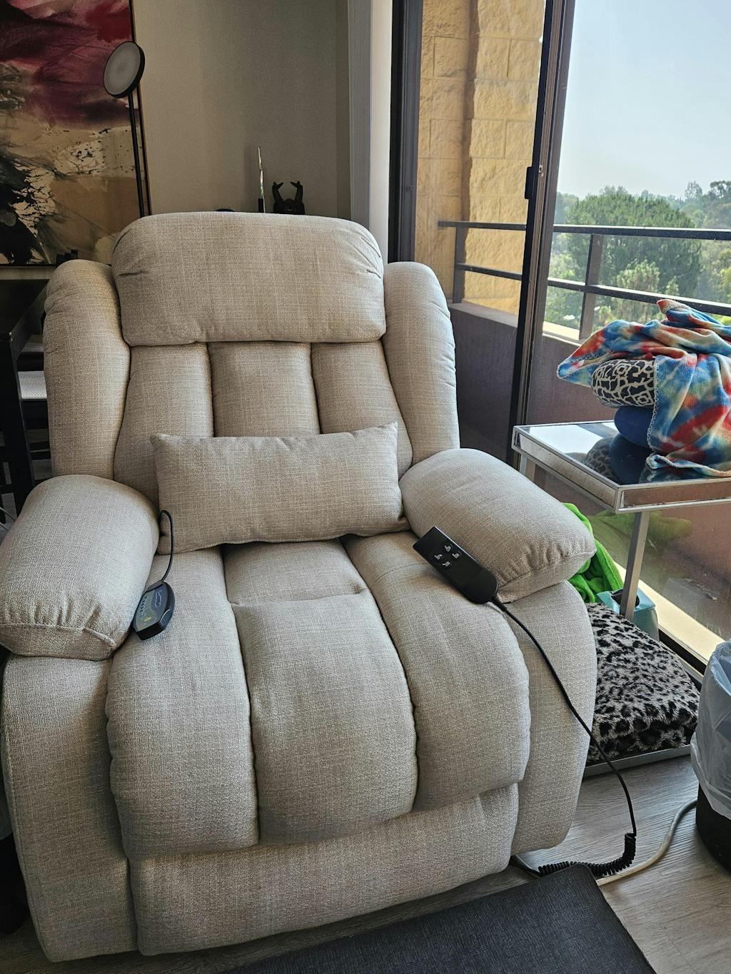 • [Infinite Position - Lift & Recline] This upgraded power lift recliner features dual motors that allow independent control of the backrest and footrest. With the remote control, you can effortlessly find your perfect relaxation position for watching TV or resting. The lift function assists those with mobility challenges, making it easy for them to stand up effortlessly, while the flat recline function makes it an ideal sleeping chair, perfect for seniors, back pain sufferers, or post-surgery recovery.